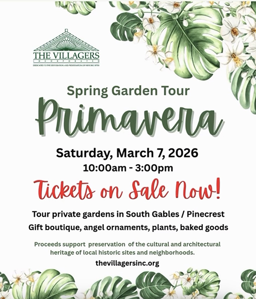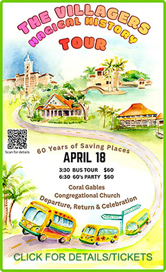 Chartered in 1966 to save Coral Gables’ iconic Douglas Entrance, The Villagers, Miami-Dade’s oldest historic preservation organization has been a significant force preserving the cultural and architectural heritage of the area. The organization has awarded grants to endangered sites and organizations, and awarded University scholarships to students with a focus on historic preservation.